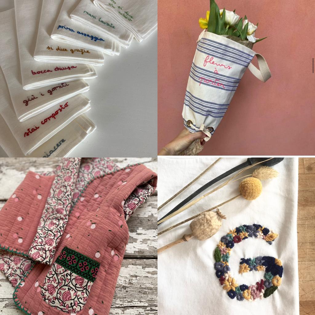 Produco anche capi e accessori ricamati a mano ed eseguo personalizzazioni.